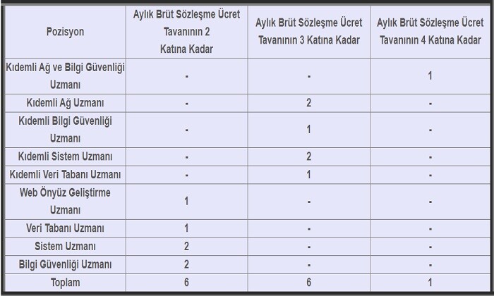 1 Kişi Kıdemli Bilgi Güvenliği Uzmanı,