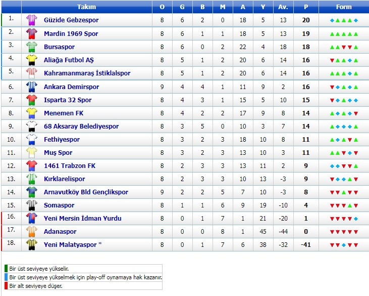 TFF 2.Lig Kırmızı Grup’ta 8 Hafta Sonunda Oluşan Puan Durumu